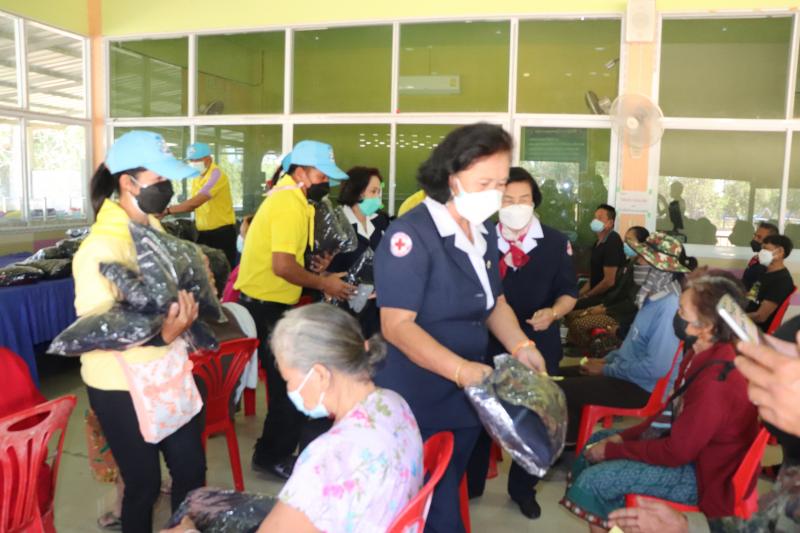 นายทวี บุริขันธ์ นายกเทศมนตรีตำบลนาทัน ร่วมกับ สภากาชาดจังหวัดกาฬสินธุ์มอบเสื้อกันหนาวให้กับพี่น้องชาวตำบลนาทัน
