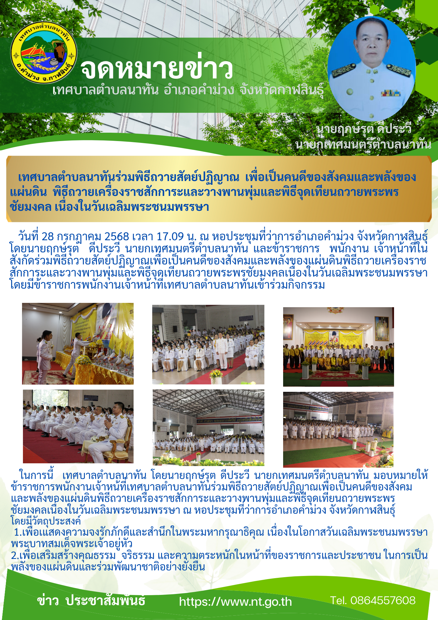 วางพานพุ่มและจุดเทียนถวายพระะพรชัยมงคลเนื่องในวันเแลิมพระชนมพรรษา [28 กรกฎาคม 2568]
